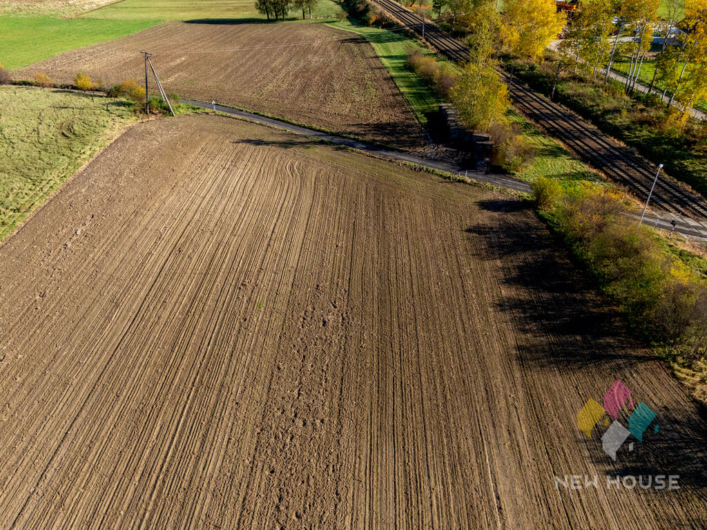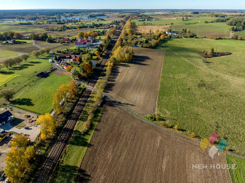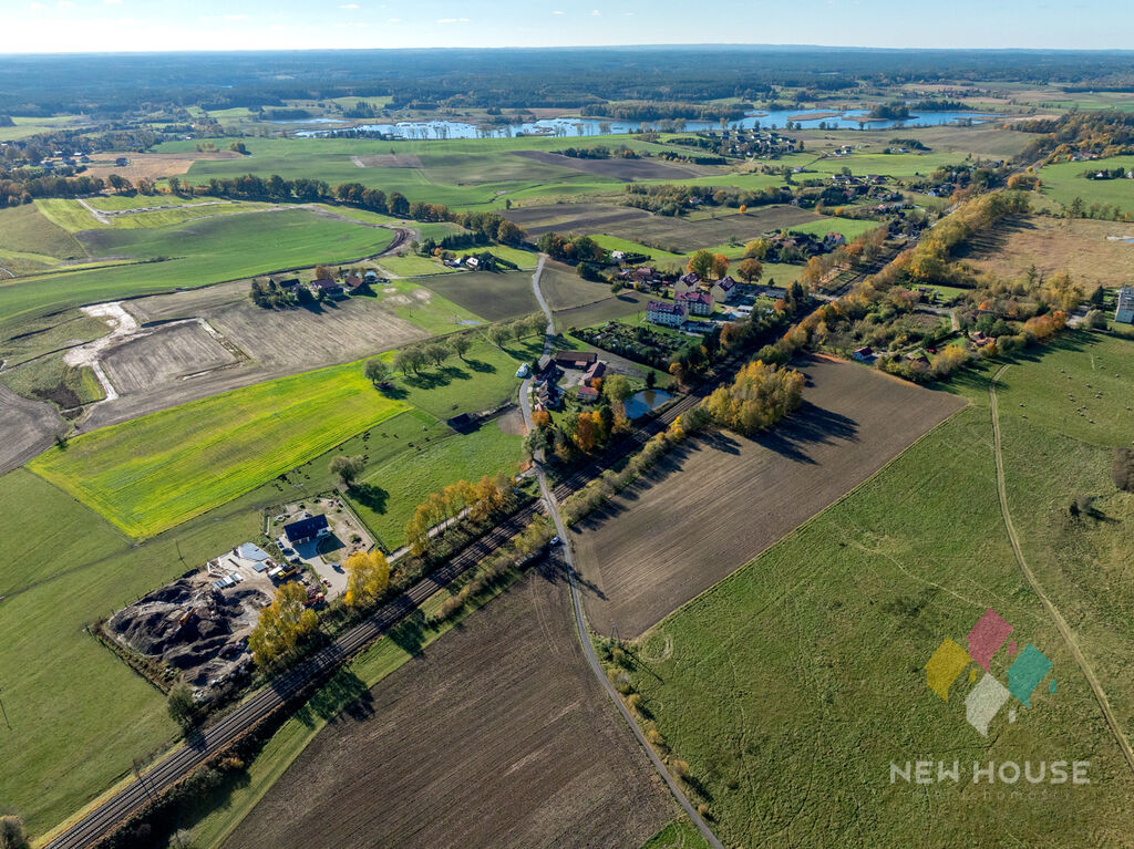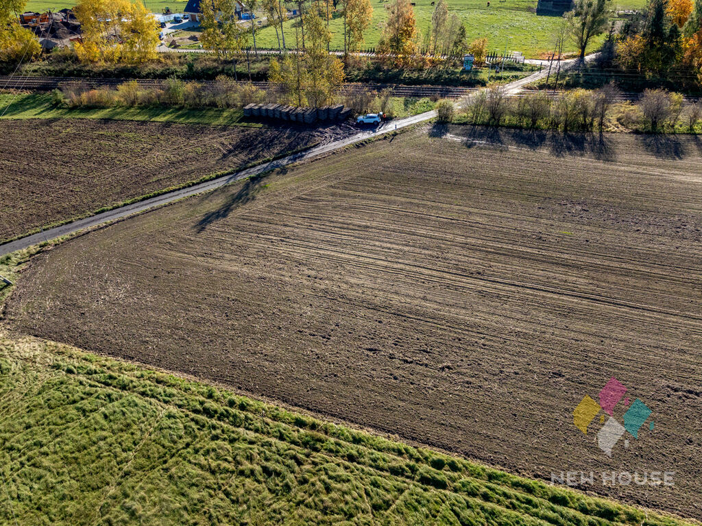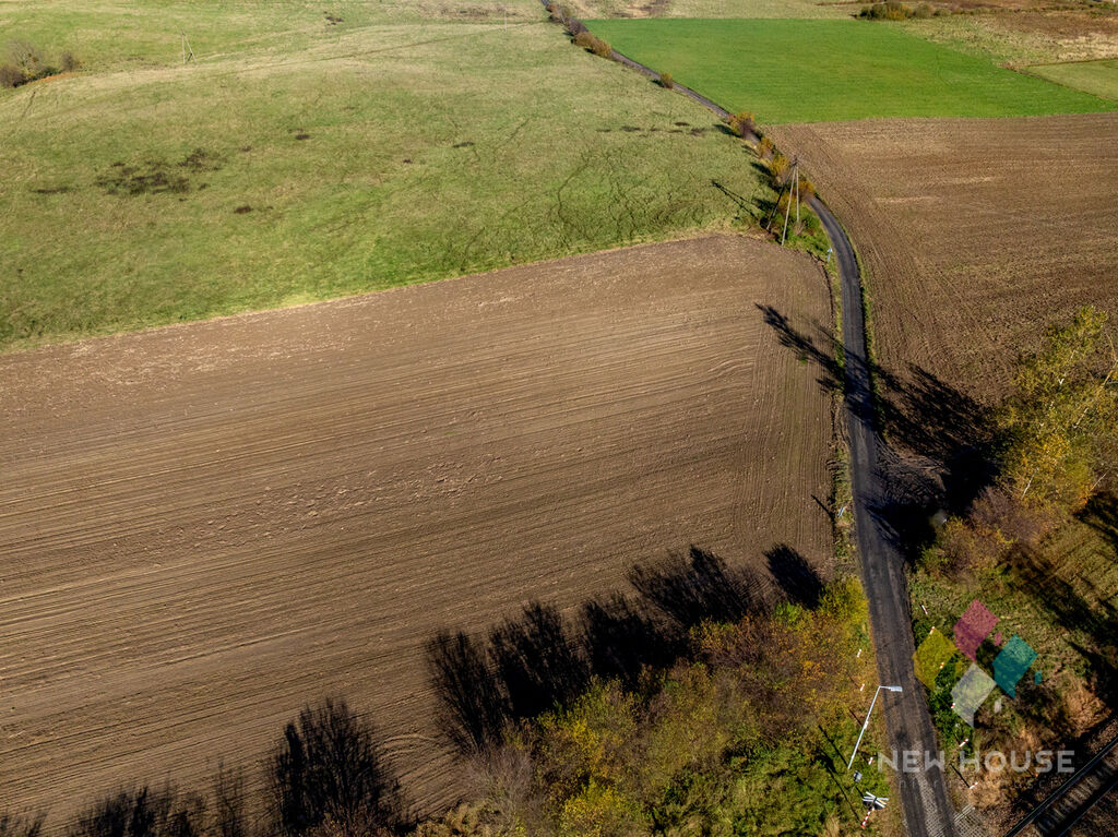 Obok działek rozproszona zabudowa jednorodzinna.